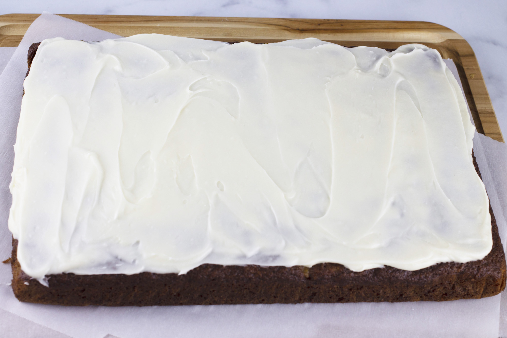 8.) Gently apply the icing to the cooled carrot cake and enjoy!!