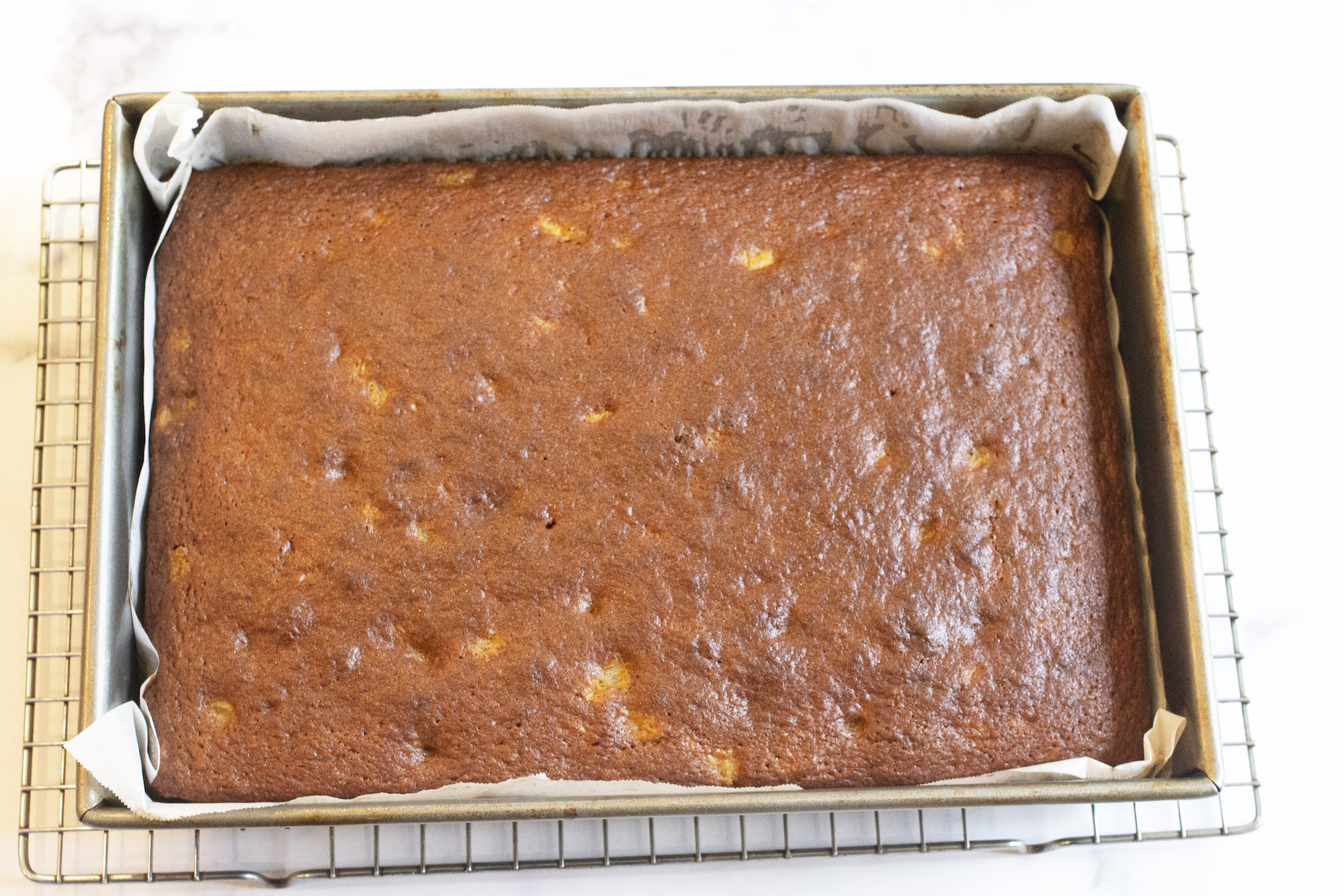 5.) Allow the cake to cool in the pan for about 10 minutes, then invert it onto a cooling rack to finish cooling completely before adding the frosting.